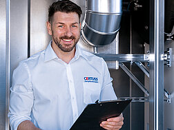 Los generadores de vapor CERTUSS permiten mantenimiento remoto a través de Remote-Control. Además, contamos con una amplia red de técnicos. Si necesita un técnico en el lugar, se beneficiará de tiempos de desplazamiento cortos, lo que reduce el tiempo de espera y le ahorra dinero. Ya sea para mantenimiento, ahorro de energía, tratamiento de agua o repuestos, ¡contáctenos!